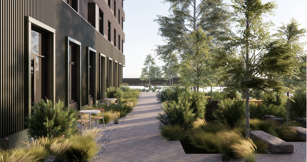 Originally the site of Westbrook's local paper, the American Journal, the redevelopment will bring 110 new residences and 5,000 square feet of commercial space. The design takes inspiration from the Presumpscot River, which is characterized by variations in elevation, contours and textures, while the building's scale and proportions mirror the historic mills from Maine's industrial past. By breaking the building's mass into angled wings, view sheds have been preserved, while also creating natural gathering spaces for residents and connection points to the city's network of trails. The building will incorporate mass-timber, and other sustainable living targets, including rooftop solar panels, all electric mechanicals, and geothermal heating and cooling. Amenity spaces are provided in the form of a lounge and co-working area, state of the art fitness center, a riverwalk, and a rooftop deck with views to downtown and Saccarappa Falls.